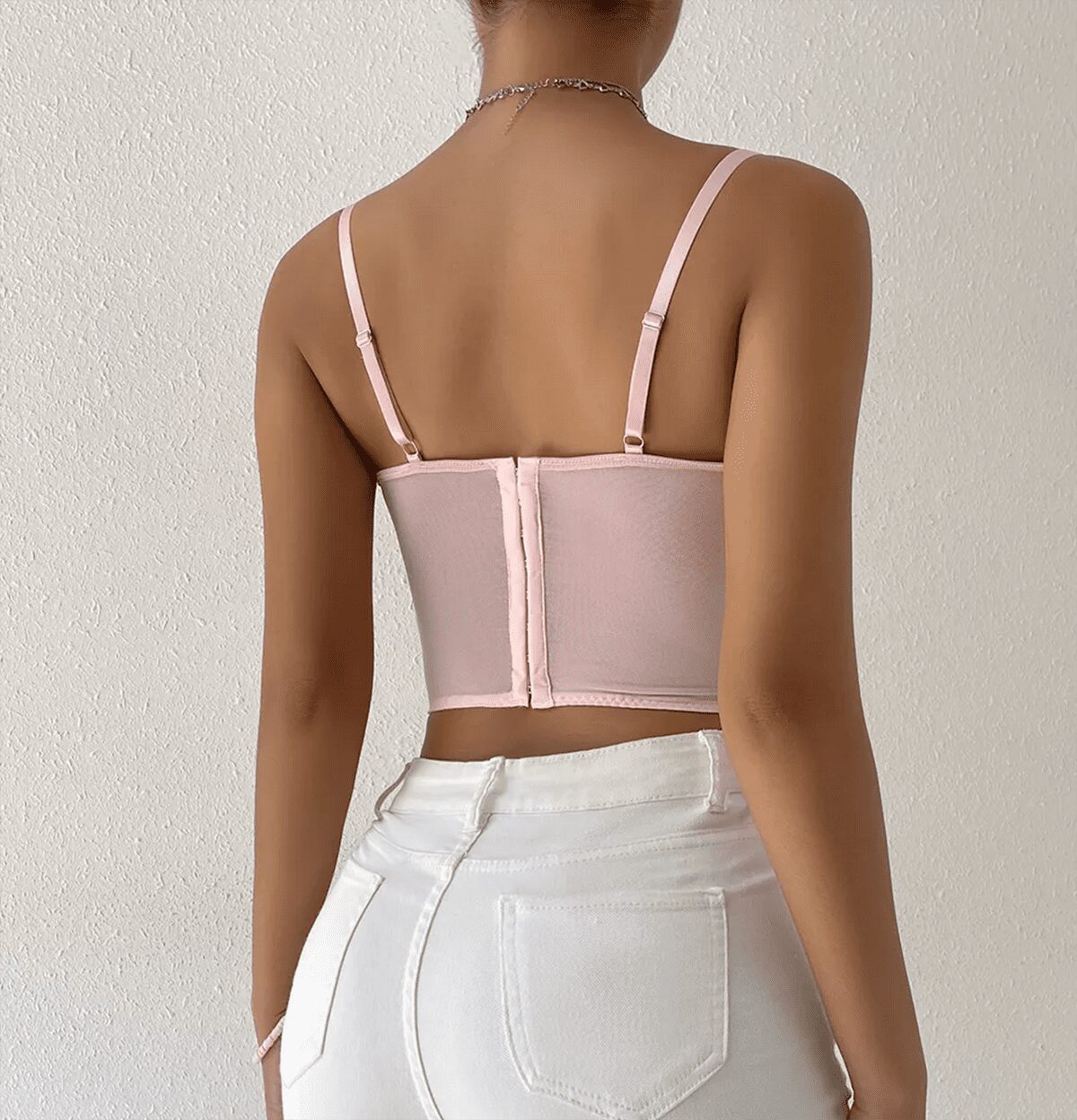 Este bustier importado es el complemento ideal para tus outfits, su diseño cuenta con detalles de flores bordadas con un toque de dorado y 5 varillas en el torso estilo corset para darte una silueta más estilizada.